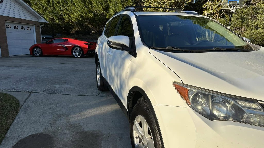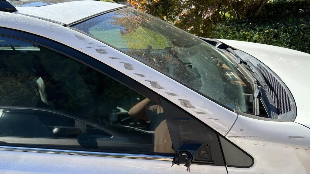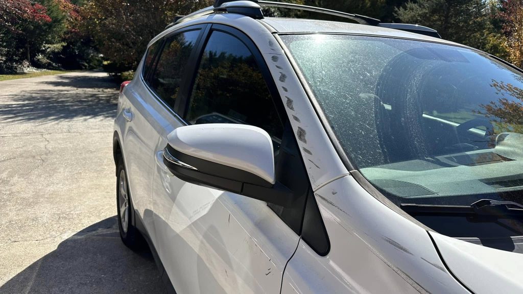 After Hurricane Helene came through the south this Rav4 needed a new mirror and a full detail. Looks like a dangling power line was the cause of this damage.